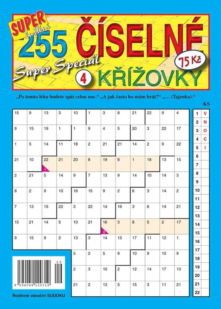 255 Číselné křížovky super speciál 4/21Skladem 9 ks75 Kč/ ks67 Kč bez DPH
