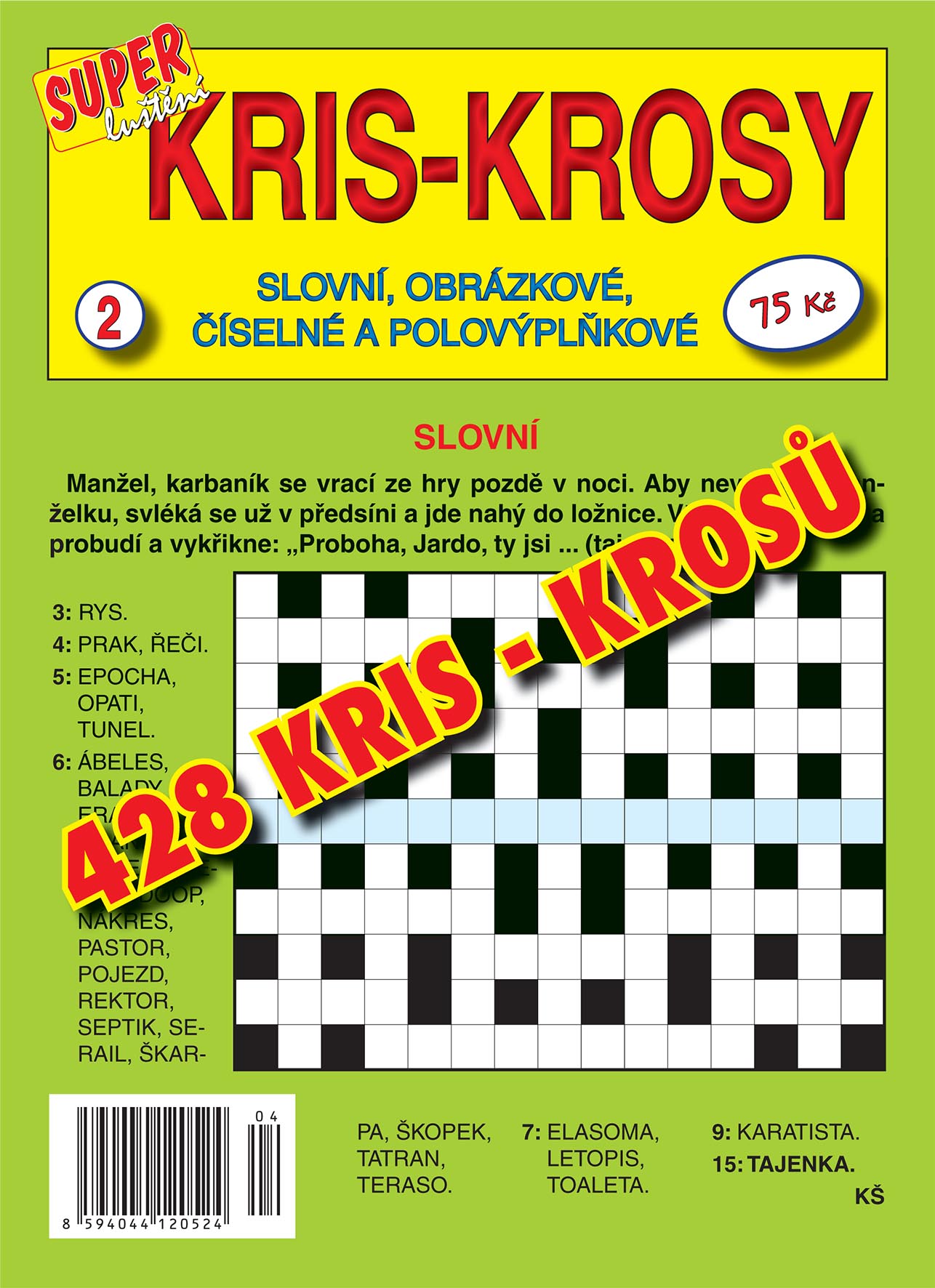Kris – kros je stále oblíbenější druh křížovky s neúplným křižováním výrazů. V tomto časopise naleznete kris-krosy slovní, polovýplňkové, číselné i obrázkové.